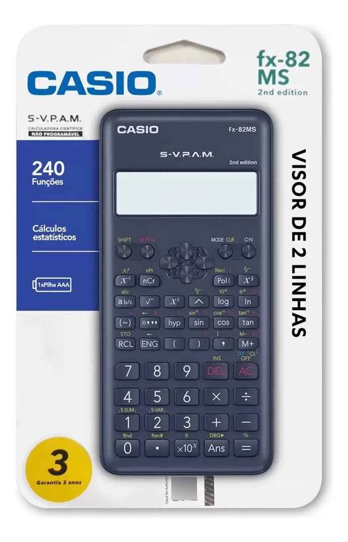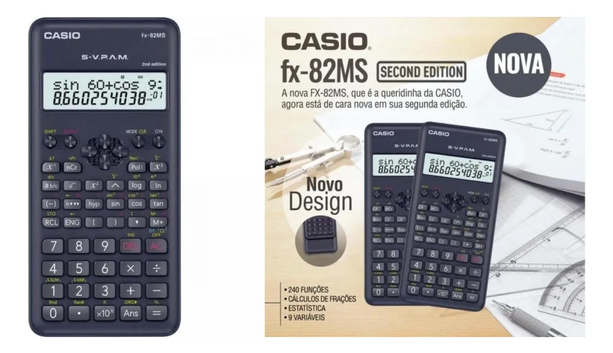 – Estatística (editor de dados STAT, desvio padrão, análise de regressão)
