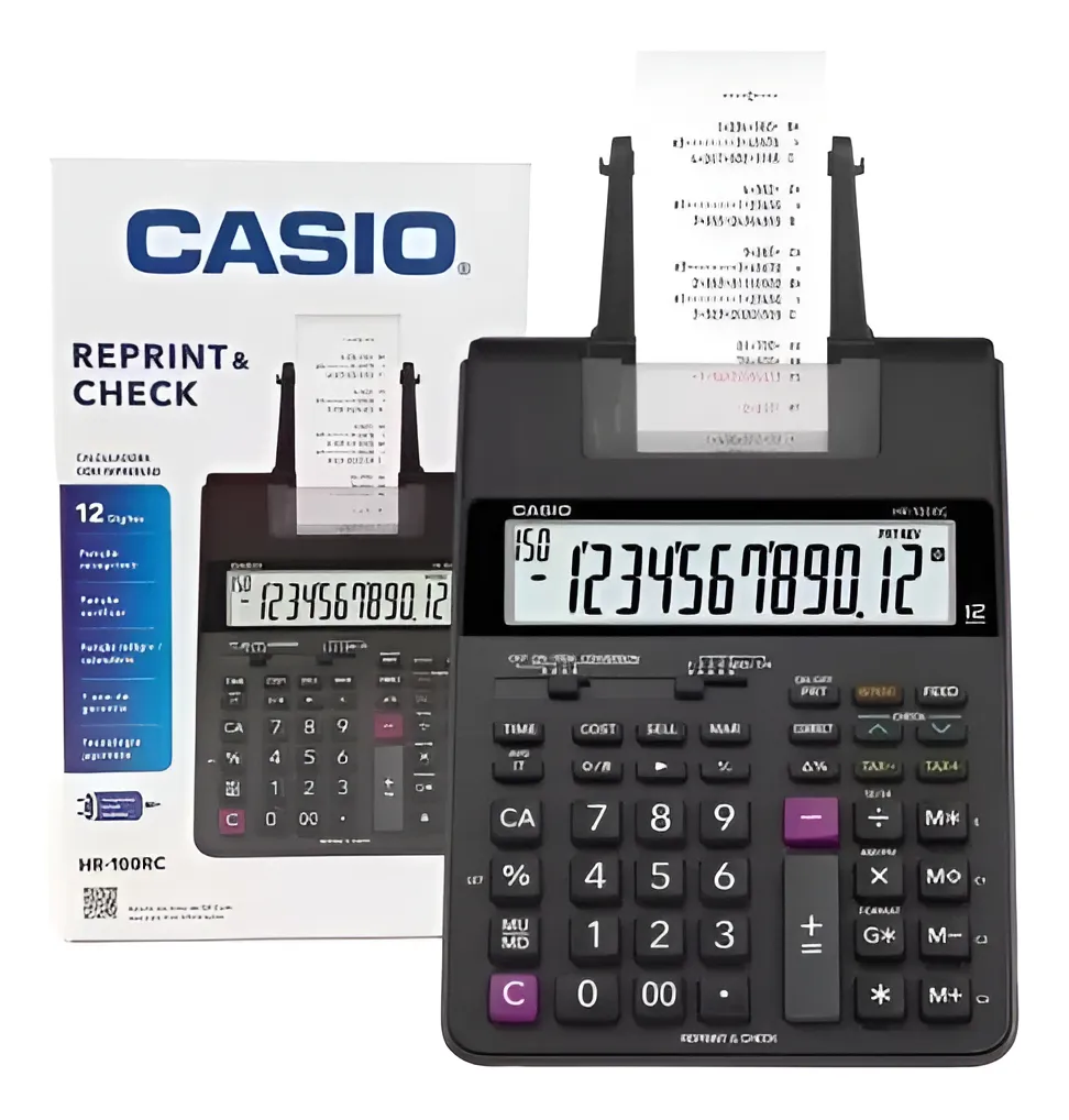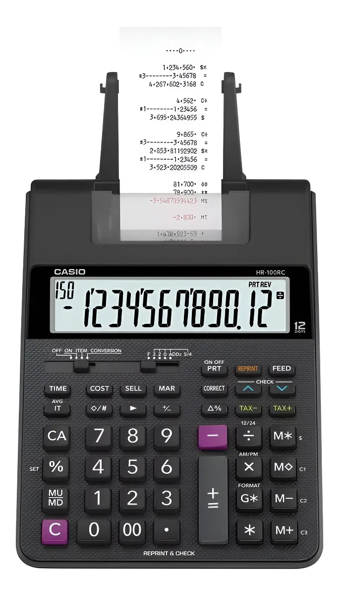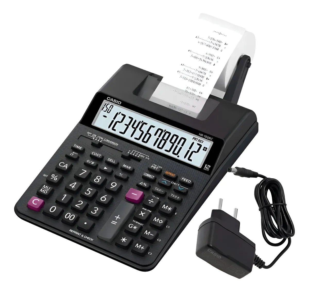 Calculadora com impressão a bateria que pode ser usada em qualquer lugar.
