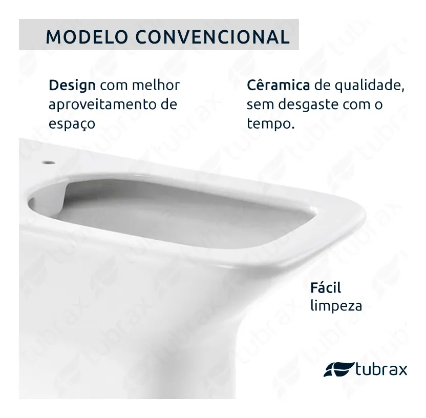Vaso Sanitário Convencional Modelo Virentis – VAB0030, combina qualidade e design inovador. O vaso sanitário Tubrax adiciona requinte e beleza ao seu banheiro ou lavabo.